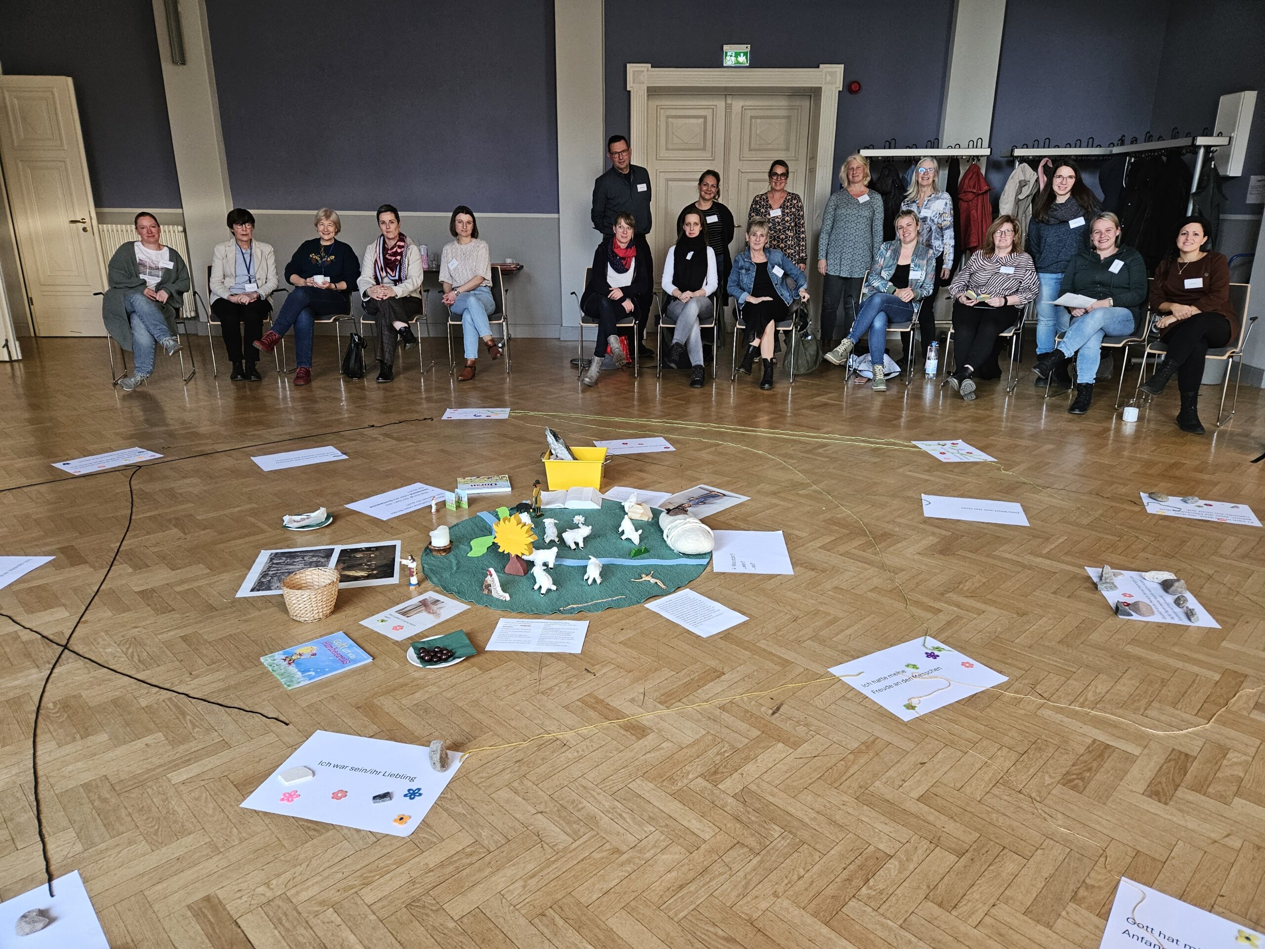 Zum Fach­tag Ele­men­tar am 6.11.2025 „Im Anfang war die Ver­lo­ckung” lie­ßen sich über 25 Fach­kräf­te aus Kita, Gemein­de­päd­ago­gik und Schu­le ver­lo­cken, nach Hal­le zu kommen.