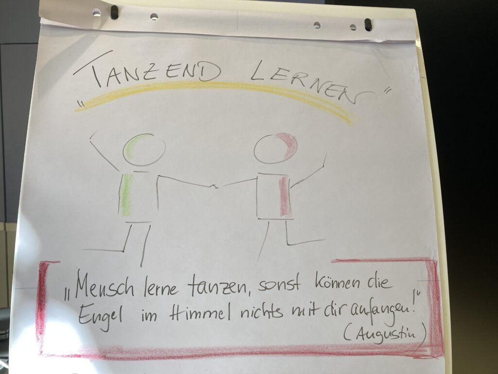 Ergänzt wurde das körperliche Einüben durch konkrete Praxishinweise, kollegialen Austausch zum Einsatz der Tänze in Lerngruppen, Geschichten aus Israel und einer religionsdidaktischen Reflexionsphase (Dr. Sabine Blaszcyk, Halle).