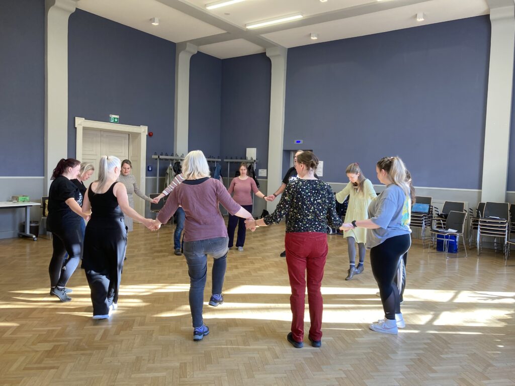Am vergangenen Freitag kamen elf Mitarbeitende aus unterschiedlichen pädagogischen Arbeitsfeldern im Feliciats-von-Selmenitz Haus (Puschkinstraße 27, Halle) zusammen, um sich tänzerisch fortzubilden.